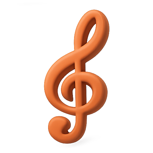 A stylized, three-dimensional treble clef icon rendered in a soft orange hue. Ideal for music-related applications or creative projects.
